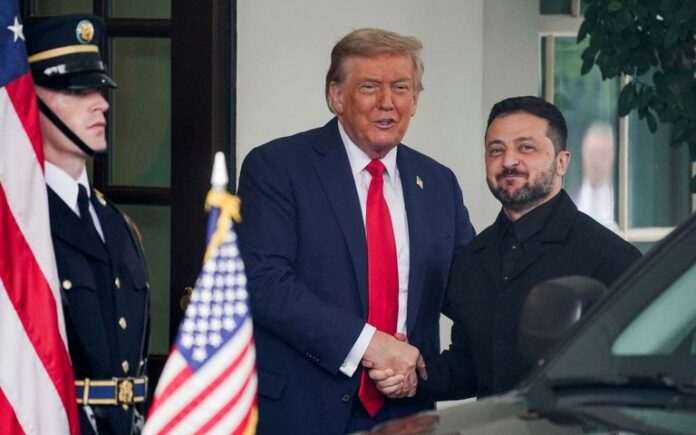 Στο άνευ προηγουμένου διπλωματικό μπαλέτο ο γενικός γραμματέας του NATO Μαρκ Ρούτε, η πρόεδρος της Ευρωπαϊκής Επιτροπής Ούρσουλα φον ντερ Λάιεν, ο πρωθυπουργός της Βρετανίας Κιρ Στάρμερ, ο γερμανός καγκελάριος Φρίντριχ Μερτς, η πρωθυπουργός της Ιταλίας Τζόρτζα Μελόνι, ο πρόεδρος της Φινλανδίας Αλεξάντερ Στουμπ και ο πρόεδρος της Γαλλίας Εμανουέλ Μακρόν αφίχθησαν ο ένας μετά τον άλλο στον Λευκό Οίκο για να σταθούν γύρω από τον ουκρανό πρόεδρο.